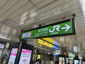 JRをご利用の方は地下改札から出て左へ(西口方面)